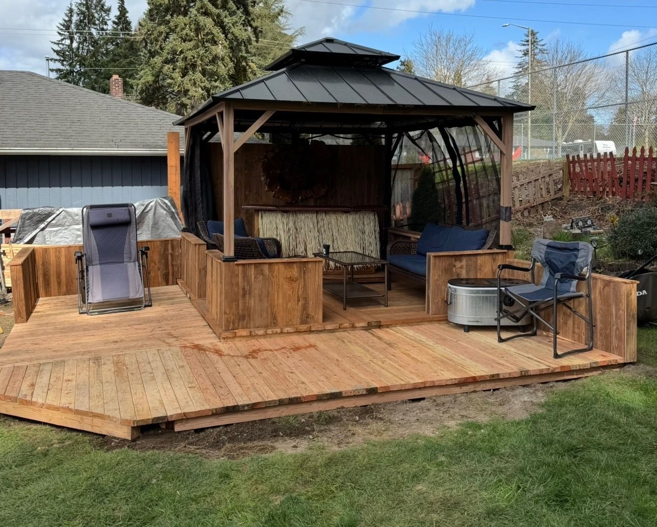 Hillsilly Construction builds and renovates outdoor living areas including decks and covered porches throughout Tumwater, Shelton, Lacey, and the surrounding region. You need a structure that can handle wet winters, shifting temperatures, and years of use without warping, rotting, or requiring constant fixes. A well-built deck or porch becomes the place where you host dinners, let kids play safely outside, or simply sit with coffee while the rain taps overhead.